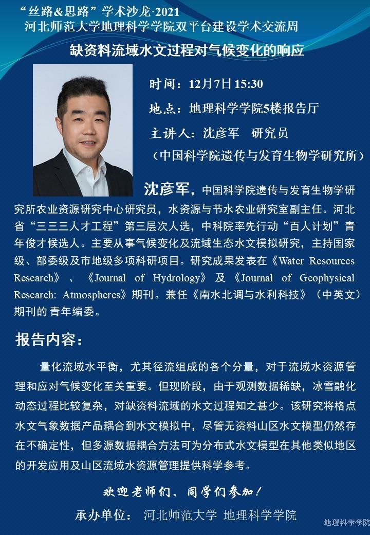 学术报告通知—缺资料流域水文过程对气候变化的响应